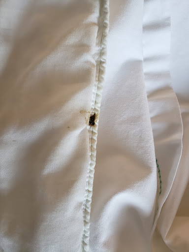 The bed was not made as precise as I'm accustomed but dismissed it, increased air conditioning to shower quickly and head out again. I smelled something slightly off-putting and continued to smell something off-putting but could not find the source until the next morning. When tossing the comforter to curl up and read, an unmistakable smell permiated my nostrils and I began to search and smell myself and spotted the linen tucked under my arm soiled with the unmistakeable smell.