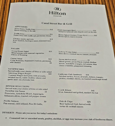 BEWARE, I made a reservation for a three night stay at this hotel. After working an exhausting 12 hour shift, I arrived to find out they overbooked themselves. I was offered a discount (still at a significant rate though) for some sort of suite that had a pull out sofa bed. I was told that if I didn't accept these accommodations I would have to find some place else to stay. I was worried I would not be able to find anything else that late in the evening so I accepted. I was already late getting out of work and had dinner ordered to be delivered at the hotel in which I had confirmed reservations. I had to be up early the next day and just couldn't be up late trying to figure things out. I cannot believe I was even charged for what I experienced. The suite was some sort of conference room with a small couch that pulled out to an extremely uncomfortable bed. The man who checked me in suggested that I put the sofa pillows underneath the mattress, so in hindsight, he was very aware of how uncomfortable the bed was going to be. I'm not a spring chicken and I do have back issues which I expressed concern about when checking in. I also was going to be working four 12 hour shifts in a row, so getting restorative rest was imperative to being able to function properly and staying healthy. To top the evening off, after showering and getting into my PJs, THERE WERE NO LINENS for the bed, thankfully there was a sheet on the mattress and a pillow. I called the front desk to let them know I needed some sheets and a blanket and was told to come downstairs to get some. I only travel with scrubs and PJs, which I was already in, and again, I was completely physically and emotionally exhausted, so I slept in my jacket. This was a totally unacceptable experience for any charge, I checked out the next morning and told them I wasn't coming back for the next two nights. I made reservations at the Courtyard Marriott for the next two nights. I should have stayed there in the first place. I tried this Hilton before and was totally unimpressed, but the price was right, so I booked my stay there against my better judgment. FYI: The Marriott is the best place to stay in Stockton, followed by the University Plaza Waterfront Hotel. The Marriott has THE friendliest, fastest, most helpful, night time front desk clerk and the rooms are very comfortable. They have great parking and their location is quite and safe. I will never stay at this Hilton again, especially after finding out that there were EIGHT!!! (you read that correctly) other parties that had reservations the Hilton couldn't accommodate due to overbooking, so they "walked them over," meaning they arranged and paid for alternate accommodations, to the Marriott!!! I was not even given this choice. This Hilton's business practices are totally unacceptable and I want everyone to know before making reservations because the last place you want to be is in Stockton without a place to stay, ESPECIALLY, after coming to the area to provide a service they are very much in need of even...