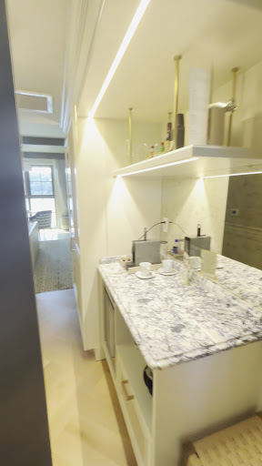 The hotel is BEAUTIFUL. It's brand new so I'm sure that adds to the luxe feel, but the decor and color scheme are gorgeous. The common spaces are beautiful and the rooms (we were in 305) are gorgeous. There is A LOT of attention to detail and everything works together beautifully. The bathroom is beautiful--and the navy blue bathrobes add to the intentionality of the space. The truffles awaiting our arrival in the room was a nice touch--though the empty plate stayed there for our entire two night stay. Shower amenities are BVLGARI and smelled delicious. We had a pool/lake view which was amazing. The table and two chairs by the window were perfect--we enjoyed them for nightcaps and cribbage.