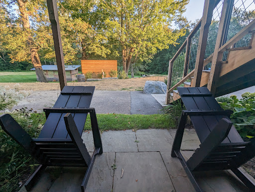 It's a shame the weather was unsettled and humid for the duration of our visit because we both would have liked to have taken advantage of the outdoor area behind the hotel. We did see the low-frills wedding from our little wooden balcony (cool seating option) but there was also a hot tub and a little barn-like structure that had some comfortable looking couches with fire pits to hang out in, which unfortunately I only noticed on a walk shortly before checking out. There's also the West Branch Little River back there, which is accessible though I didn't see much in the way of seating by the water's edge. There's been a ton of flooding lately so that's probably for the best.