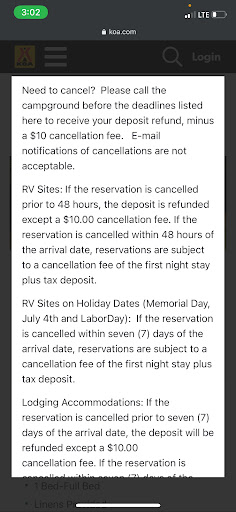 Cons-There is definitely a lot of rules. I am sure because of issues from the past. But the amount of things you have to initial definitely makes it feel less relaxing because you’re always afraid you’ll break a rule you initialed. For instance no chalk on the patio or they charge $100 cleaning fee…. -They only want you buying their fire wood. Again understandable….but on nights when there was this one gentlemen working, he would drive around flashing a big light into people’s camp sites “looking for outside firewood” which we thought was weird. And they will kick you out of the campground if they find out you have outside wood (I initialed that in the rules) -maybe we went on an off week but the campground was dead. For our last 2 nights we were the only ones on our road and there were 2 other roads that were completely empty also. It felt deserted -the store closes a little early 7:30 on a wednesday and at 8pm you are basically forced back up to your sites for the night. Last time we stayed here my son loved going down and fishing at night. This time he was told to go back to the site at 8pm. We also decided to go swimming after dinner one night and got kicked out of the pool at 8. We thought the pool stayed open until dusk but I did go back and read it was 8 in the rules but it just seemed a little early for summer since it was still pretty light out at 8pm. -No more colorful “train” rides. This was a huge let down for our daughter. Our fault I suppose for telling her about them but again, last time we stayed here they offered them twice a day and the kids LOVED them. -water slide was down and I guess it has been most of the summer but it’s not posted on the website. The kids cared more about the pool anyways but the pool was very cloudy and full of sand. There was also a very bad smell. We couldn’t tell if it was coming from the splash pad or the pond. Lastly the 11.99 a night resort fee….We’ve been camping for years and have been to many resorts and other KOA’s and we would have never guessed or realized this was considered a resort until we...