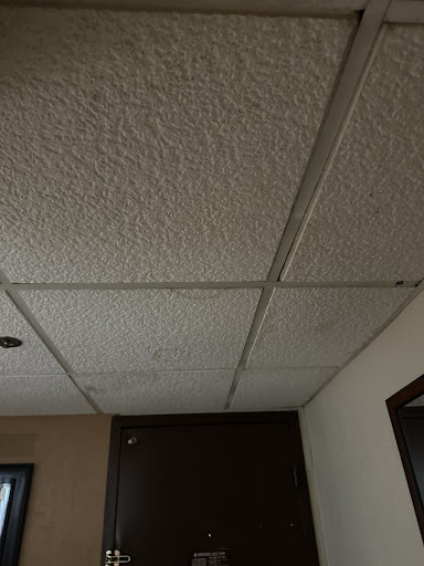The walk to the rooms: There's two ways to go to your room, either through the pool or through the hallways... because each room has two entryways if you're on the first floor. I've never seen that before, but it makes sense if you intend on using the pool during your stay. The hallways are sketchy af, dark stains on the carpet from who knows what, with ceiling tiles missing/removed for the fire sprinkler system and again, smells like mold. Lots of water leaks stains. The stairs to the second floor is just as sketchy, but there are cameras. There are no elevators.