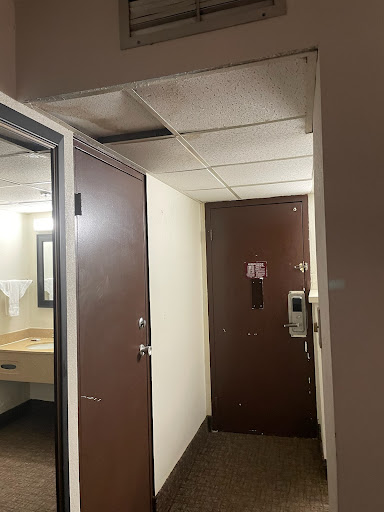 0 stars if possible! Only Jeff from maintenance was kind, understanding and tried to help. DJ I guess is the main person in charge and Jeff has zero say in anything. My room, let me tell you all about the disgusting and room that is falling apart. Little things that might not matter to some: No full length mirror but all other or most other rooms did have. No iron or ironing board. (Place for them) No hair dryer (place for one) Towel rack broke and kept falling off wall. Both sinks leaked, do not put anything on counter gets soaked. No phone No microwave No fridge TV screen cracked No cable so no stations on TV No blanket on bed Sheet too small so only 3 corners on Huge thing Paid for a room with two queens got a room with I queen Ceiling literally leaking water, could sit and just watch it, drip Floor soaked from the leaking ceiling Not only was the room falling apart but their advertising photos are NOT accurate. I was suppose to have a room with two queens, not only did I not get two beds I only 1 queen, their own advertisement shows nowhere is this a room they offer. I'm guessing only 1 queen in room because of the water coming out of the ceiling would have drenched the second bed. Advertised gym, closed. Pool literally had a garden hose in it filling. It might be an indoor pool but not heated! Hot as it could be in the pool area, clearly no AC working. Parking lot very dark at night and not safe (holes you can trip in), bolts, screws in parking spots (watch your tires). Fountains/water ponds not functioning. Oh I should mention fireplace was blocked and smoke filled front lobby. It's a shame because the people below the guy "in charge" seemed to be nice but you can only do so much if you're not in charge. Take every negative photo and review very seriously. This place should be condemned. I'll admit I looked online and saw the photos and reviews but never imagined the complete lack of respect from voicing honest issues with the room. Stay very clear and beware Was I refunded, yes but not till after DJ blamed me for, heaven forbid what HE told me I would have. He kept speaking very loudly at me for all to hear so he never heard me say multiple times I did not want to argue and tried to go see the room they offered to move me to. As I held the key and desperately tried to get away from his verbal abuse, I finally gave up and gave in to his demands I should leave There were I guess 100s who would love the room and even sleep on the floor? Btw he did not hesitate to put the room back up available, just disgusting. Heaven forbid I expected what HE told me I had. He expected me to be grateful for the water drenched empty room and just shut up and bow down to him. This man, has ZERO people skills, never once apologized just blamed me. Probably because he was stoned aka high from all the marijuana he smoked, just nasty. Maybe he expects women to shut up and worship him, take abuse and not ever question him? Nothing he has or promotes is worth the disgusting way he treated me, absolutely nothing. I'm certain this review will get a standard response like all the other honest negative reviews. If this management truly wants to make a difference, never have this DJ at your establishment, actually do the renovations that seem to be the excuse used when there is any sort of complaint, don't use this as a means to dismiss the rundown, falling apart, dirty, disgusting hotel! If none of this is possible, condem the place and have it leveled to the ground where it belongs. STOP renting out rooms that aren't 100% suitable for life in them! These roofs didn't just...