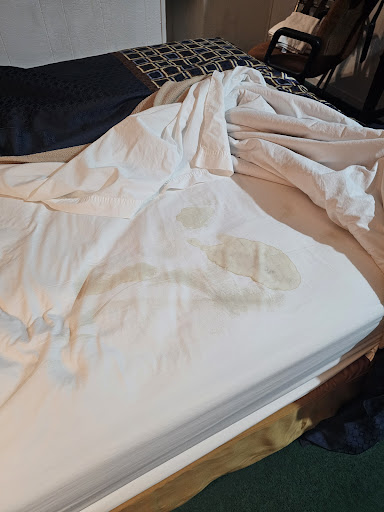 I've stayed here several times before, but last night was a big disappointment. Always before, I was in a room on the south side, but last night was given a room on the north side. Big difference, and not in a good way. The bathroom was wet -- very wet -- from a leaky shower which splashed water all over the floor. If you want to stay in this room, bring your own mop. The toilet seat was loose -- very loose. The toilet itself was the kind you'd have for a midget, or a child, or in a small RV. If you're over 120 pounds, forget being able to sit on it and have stuff go where it's supposed to. The carpet was dirty. The edges of the carper had, apparently, years of dirt, dust, junk, and who knows what built up, especially noticeable while seated on the toilet. Has nobody there ever heard of a vacuum cleaner wand for cleaning in corners or edges? Could somebody possible try cleaning under the bed? The walls were splattered with God only knows what. The refrigerator was not level, and it wobbled, as did the microwave sitting atop it. The door had no security peephole. The door security latch was broken and hanging by one screw. The shampoo containers were not plastic bottles; they were tear-open envelopes which were impossible to open when wet (like in a shower -- duh) unless you have a knife or scissors handy. The shampoo they contained was barely enough to soap a chihuahua. THE PRICES HAVE GONE UP. Instead of $45 or $50, it was $61 plus another $10 for the dog. If you don';t mind driving to Mattoon, a Motel 6 is $44 a night with no charge for the dog. The TV worked. The bed was okay. It is convenient if you have business in Sullivan; it's all there is in town. But this room was not worth the price by any stretch. I may need to change where I stay in the future, and just...