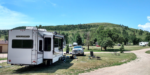 Read moreElk Creek Resort is located in the beautiful Black Hills of South Dakota with the smells of pine and sound of nature all around you. The resort offers cabins, full hook up, electric and water hook up, and tent camping. There is a pool, a bathhouse, and laundry facilities on site, as well as a small general store. We chose to stay here for an extended visit due to our family relocating to the Rapid City area and needing to search for a new home. When looking online, the pictures looked ideal with a pond, pool, creek, large sites, and beautiful area. Unfortunately the full hook up sites are very small, so small that we are unable to extend our awning or put a picnic table next to the camper. On top of that, the "poop shoots", for lack of a better term, come up out of the ground and are even closer to your site than your neighbors camper, which in August with temps reaching over 90 degrees makes being outside your camper unbearable due to the smell. The bath house features outdoor showers as well as indoor with toilets, and there are sinks outside. I am not sure if they are ever cleaned though due to the smell of them, the dirt on the floors, and the fact that everytime I have been over there the light has not worked. The pool is a nice size and open to the general public for a fee, however it is not heated and even when the temps were above 90 degrees, the pool was freezing. Plus I have swam in lakes that were cleaner with less bugs. The internet service is low speed and spotty, not good when you have papers for your masters program due that week. Cell service in the campground is non-existent and when you do receive a call you walk around like a Verizon commercial saying, "Can you hear me now?" Which would be great if you were trying to get away from life, not make one. I am not sure of where the pond or the creek is, but it is not at this campground, which was disappointing to our little guys as the webpage stated they could go fishing in it. Lastly, I am not sure of how they figure their pricing, when I called to reserve the space I was quoted $550 for the month, but when we checked in we were charged $600. Which at the time we still felt was reasonable, so we paid it. Then we talked with them about extending our stay by an extra week and they told us that due to our kids (two seven year olds) and dogs they would need to charge extra, as we were using more utilities than they expected. I am sorry but my seven year olds shower every other day (which I am lucky to get as they would rather be playing and getting dirty) and are at school during the day, while my husband and I work. We don't use the air conditioning system often, not at all during the night and we, like most responsible adults, clean up after ourselves and our pets. Not worth the $50 extra in utilities, or the extra $25 paperwork fee that they wanted to charge, since everytime we asked a question, once, it meant more work for them. In the end the location is beautiful, but the customer service, sites, and cleaniness are all around...