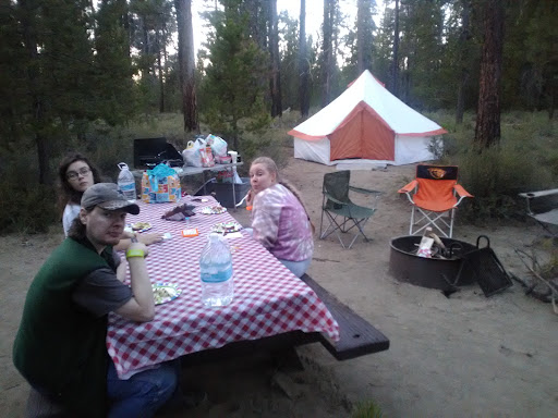 Fall River was beautiful! We stayed in site 4, and it was about 40 meters from the river, which was nice. We saw multiple fish in the river and enjoyed the trail along the banks. Campsites are nice sized and with decent privacy from neighbors, along with ample shade. There were surprisingly no mosquitoes, and that was very appreciated. It was one of the dustiest campgrounds we've ever stayed in. The dust was a little overwhelming. No water, so come prepared! Pit toilets are fine and well maintained. Directions from Bend are easy and you are able to stay on a well paved road for the...