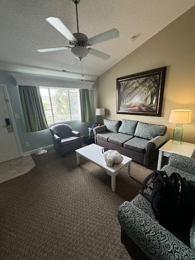 This hotel was decent for its price. The rooms were nice but outdated. They were equipped with full kitchens which were nice and provided a lot of flexibility but still outdated. The beds were fairly comfortable and even the pullout couch wasn’t too bad. Everything worked as we expected which was good. However, the walls are very thin. We heard children clearly yelling and crying in the room next to us all weekend. Also, the shower curtain was in a bag next to our door when we walked in so we had to put it up ourselves and in the other bathroom, the shower door was off the track so it was hard to open and close. In addition, the room was generally clean, but the showers left more to be desired in terms of cleanliness. There were TVs in the living room and both bedrooms. They were smart-ish and had some options to use streaming services but not all the options for streaming services. However, there was live tv which was nice as well. There are some things that come stock in the room including, pots, pans, dishes, cups, silverware, coffee pot, toaster, fridge, salt and pepper, two packets of laundry detergent, coffee, dishwasher tablets, dishwashing soap, sponge, towels in kitchen and bathrooms, pool towels (NO BEACH TOWELS), soap in bathrooms, and there was one shampoo in one bathroom (NO CONDITIONER).