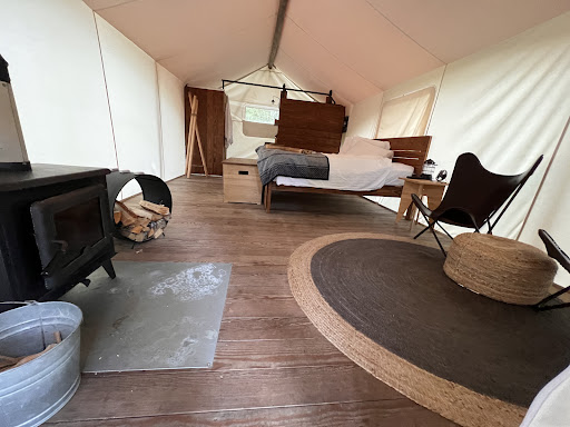 Read moreWhile the concept of glamping may sound wonderful and even look wonderful, my husband and I were disappointed in our 2 night stay. For $500 per night you aren’t allowed to check-in until 3pm and then early checkout at 10am so you aren’t even getting a full day for that absurd price. Bookings are non refundable and when you arrive you’ll find there is very little to no service, you are not allowed to drive up to your tent - you park in a lot and load everything onto a golf cart to then unload at the base of your mini driveway to then carry up to where you’ll be staying. No fires are allowed outside so this is nothing like a campground vibe. On the plus side you have a sink, toilet and shower in your canvas. For your shower you need to pull down a chain the entire time you’re using it. To heat the water they have a propane heater connected to a propane bbq tank in the back which they only know needs a replacement if someone all of a sudden runs out of hot water. Not great!