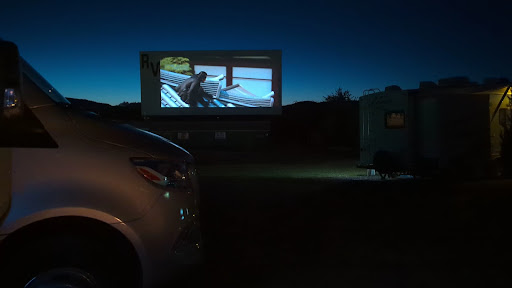 The star of the show though has to be the resurrected drive-in movie screen with the updated digital screen which is incredible picture looks crystal clear in person! What a blast of nostalgia and to be able to do at a campground is a real treat. I'm a bit of an aficionado of drive-ins I've been to them all over the western US and Canada as well as some back in eastern Canada, I make a point to go to them all over while traveling. They all have something special in my opinion but there really is something pure bliss nostalgia about sitting at the drive in theater while camping and eating s'mores by the fire 👌
