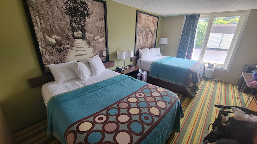 Read moreAre you kidding me.... don't stay at this one, go to the Super 8 off Jonestown Road in Harrisburg, that place was amazing. Lots of pillows on each bed, plenty of toiletries and coffee supplies. And we were very surprised at the free breakfast for a Super 8. THIS PLACE... 3 bath towels for a room that sleeps 4 people? 1 cup, 2 coffee packets with 1 condiment packet? The "informal dining" area they have for your free breakfast is actually where the front desk is, and I didn't want to go in there to get my key much less eat in there. There's black mold in shower with nasty stuff in the grout. I know what you're thinking, this is a Super 8, and I can handle a bad room... but a bad room and BAD customer service.... ? There was nothing professional about this person. When asked about getting some shampoo and conditioner, we were told they don't give out conditioner anymore. Nor do they give more than 1 coffee...? How about, I'm sorry the establishment sucks, but how can I make it better for you.....? No, the clerk seemed bothered because he was playing Mindcraft on his laptop when asked for the toiletries that we didn't have, yet they advertise in their bathroom to provide. When given the room key a "sticky note" was attached to tell us the room number. Is this what Wyndham wants their name attached to? The basics in hotel/motel service... be nice, have clean towels, or at least enough... and try and make it better for your GUESTS, not tell them how much you hate working Sundays. Oh, and we were told that although we didn't have as many pillows as the other Super 8, at least we got a pillow-topped mattress. The only reason they are even getting 1 star is because we couldn't post this with NONE. Ok, at least he went to the laundry room and got us more coffee....We feel like we got sucked into a black hole, vortex that even the Wyndham Wizard can't...
