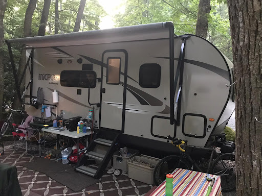 Read moreAs a family of four with two special needs kids we go camping every other month for a few days at different parks and places. This , hands down was one of the nicest, well planned parks we have stayed at. From the entrance and all through the park the grounds , roads and sites were clean and well kept. All sites (even tent) had running water and electric hook up. A beautiful stream ran through the park and there were even two spots you could enter. The water was cold 🥶 but just beautiful. There was even a waterfull (kinda 🤔) directly next to our site aka "waterfall site " 😁 I would maybe recommend some how impoving the look of the giant pipe through the hill look 😂 😂 😂 like bushes...like up some rocks to hide it ....something 😦 So upon checking in after a four hour drive with two toddlers I will say I didn't feel the warmest welcome I ever felt when first walking in. I also thought it was weird while go over the rules , we kept repeating the no kids in sanctuary part like 3 times. Witch wonderfully is set up so the entrance is right next to our site 😂 it was hard to keep the kids from wanting to explore but thankfully there was a little bridge that had water running through it that was very entertaining for spectrum kids ❤️ We did have a golf cart man come by when we had set up a hammock . I had missed that when I checked the rules on the website. When he came up and explained he was def cool about it but also kinda over explained a little bit 😂 like we get it protect the trees....ya know the ones with site signs nailed/screwed into them 😂 Pretty big deal for us cause we have a non verbal , eloping, not into much son that loves to swing more than anything ❤️ 3 nights without one ..not really an option. So we were able to rig it up from my car to the table and no one bothered us the rest of the time 😊 All in all I def would recommend this park and a visit . Maybe not the most kid friendly but there is a good amount to to around the area as well. Great little office/store. Very clean and functioning facilities...