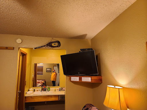 Read moreSet up our reservation over a month in advance for a room with a king bed. This is the old Kiamich Inn that has been bought by the Rocking H, didn't realize that when I made the reservation. Room 12 is very small, big hole in the bed spread, no blanket. Toilet & bath tub in the bathroom, sink is outside the bathroom door. Light for the sink area is above the mirror so I had to stand on my tippy toes to reach to turn light switch on & off. Toilet top is broken, toilet does not work. The manager is very nice, when told about the toilet she could not locate a plunger. Sent her helper to the store to buy a plunger. Helper comes back and hands my husband the plunger, did not even offer to try to fix it. My husband tried the plunger method and toilet was still not working. My word, you have to have a toilet. So they moved us down a few doors to a room 17 with 2 gueen beds. Toilet & bath tub in the bathroom, sink is outside the bathroom door, about 1 foot away from the end of the bed. There is a small window in the bathroom with no curtain or blinds on it. There is mold on the wall where the bath tub is. No hook on the door to hand your clothes. The light fixture over the sink has a chain, again had to stand of tippy toes to pull on and off. Toilet ran on and off all the time. Had to sleep with the bathroom door closed cause again there is no curtain or blinds to close so light shines through window all night long. AC unit/heater is built into the wall, my husband had to stand on the bed to adjust it and he is 5'11" tall. Beds have sheet and bedspread. I don't like to use a bedspread cause they never get washed, so we asked for a blanket. They do not have any blankets available, because owner will not buy any. Room had been repainted, looks like floors were replace with vinyl planks, big plus did not see any bugs. Noise from the road was a bit loud. Other good aspect is you can park right...