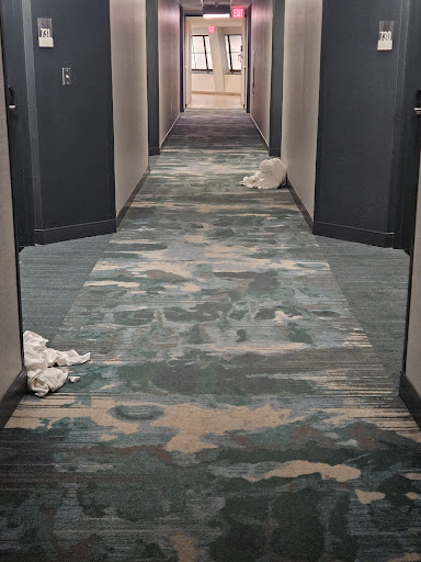 Read moreDirty linens left all over the halls in both the 3rd floor and 7th floor. Carpet throughout hotel was dirty as if it hadn't been cleaned in a decade. At the pool, I was bit incessantly by noseeums. Batteries in my TV remote were nearly dead. Unable to communicate with half the front desk staff. The Italian guy who worked there, Francesco, clearly thought he was better than me since I was an American with an Italian background. I asked to have my 2nd night's stay refunded to my personal card and deducted from my company card since they were supposed to have paid for it. They said I had to call Hilton rewards. I called the rewards company and they said the front desk could've done it for me but apparently it was just too much trouble for them. There were stains all over the furniture upholstery. I'm still hoping the brown stains on the couches in the front lobby were coffee and not something more putrid. The newer staff seemed poorly trained and confused. Some people were offered their signature cookie when checking in and some weren't. I was offered one for my first night, but not my 2nd when I had to check out and check back in (even though staying in the same room but under different payment method). My coworker's shampoo was torn off the shower wall and hadn't been reattached. The conference room we used was entirely too cramped and had to be a fire code violation. It said it held 90 but there were fewer than 70 of us and we could barely squeeze out the door around peoples' legs to use the hallway restroom. Wifi was super slow and took forever to load Pluto TV and other apps. The restaurant was entirely overpriced and Captain D's gave it a run for its money, but I'll review that separately. The hydro massage chairs were a great idea, but it was unbelievably awkward with people walking by and no door to close. You couldn't relax because every time someone walked by, they looked directly in at you and your eyes locked. So creepy... The fitness room had a great view but it was opposite the massage chairs. The machines would better be suited facing the doorway so those with PTSD aren't anxious with their backs to the doors and music on so they can't be aware of their surroundings. A couple saw a huge palmetto bug crawling on the floor outside the restaurant as I was getting off the elevator and they were getting on. The hotel doesn't even have a shuttle even thought it's super close to the airport. There's no complimentary breakfast and the only available breakfast was at the nasty/expensive restaurant where rude staff questioned my coworker's order. If she only wants a bowl of oatmeal and not a full continental (WASN'T continental, because it only was fruit and cereal), then I dunno? Maybe get it for her? We're on per diem, genius, and the breakfast was twenty friggin' dollars. The guests coming in the night after we had our conference were sketchy at best and I completely get why we park our cars in that parking lot at our own risk. It wasn't because of outsiders coming and breaking into them in the lot overnight- it's because of the trashy people who reserve rooms at their hotel. In the morning on Saturday when I was heading out, I couldn't get out of the parking lot because my parking ticket was validated but never returned to me. I rang the hotel desk for assistance, but someone answered and just hung up on me. I called for someone again, and they didn't answer after 6-7 rings but then just opened the gate for me. I could've been someone who never paid and they just let me out never to return. Glad to know I didn't actually have to pay $20/night parking for two days and could've gotten out for free, no questions asked. And a QR code to tip the cleaning crew? You're joking, right...? The only thing good I truly have to say whatsoever is that the pool, itself, was clean, the floor I was on was extremely quiet once in my room, and the view was decent. Otherwise, I would never return here, let alone suggest we hold a...