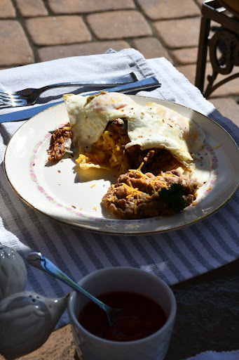 The food was outstanding, tasty juice and coffee – with a selection of fresh fruits and melons, followed by some eggs on a bed of zucchini hash and Chris’s own smoked bacon that we watched him work on earlier – simply delicious. There were fresh peaches wrapped in pastry for something sweet that just capped off a wonderful breakfast and a delightful stay.