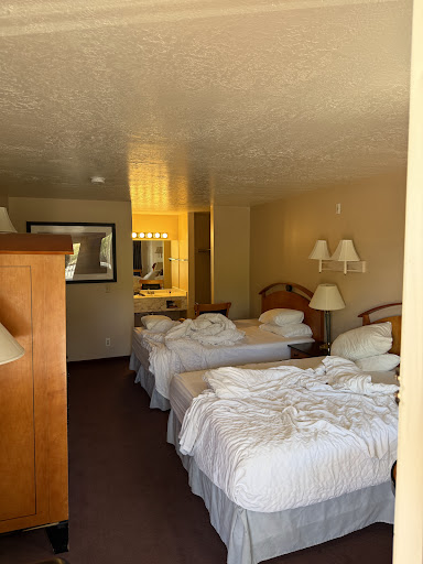 We stayed at this property on the night of June 14th, 2025. The rooms are pretty vintage, but overall decent and clean. However, for the price we paid, I’m sure we could have find something better in Torrey. The real issue, for us, were the employees. Specifically one. The morning after the day we arrived, my husband, his service dog and me went to have breakfast. One of the employees, (hopefully the only ignorant one), did not let my disable husband in the breakfast room because of the dog. We tried to explain him that that was not a pet, but a service animal. We even asked to talk to the manager, cause no one told us anything when we checked in, and he said he was the manager. After we informed him that not letting our service animal inside was against a federal law he said that “he has 5 service dogs at home, but he doesn’t let them in the breakfast room”. First of all, I don’t think you can have 5 service dogs, but if you really have a service dog it’s because you need it to be with you, you cannot just leave it at home. Additionally, he was just very rude, kept interrupting us while my husband and me were trying to talk to each other. His argument was that they have people from all over the world and that they do not like dogs. After this horrible discrimination, my disable husband was forced to have his breakfast outside. The employee did not even offer to bring the breakfast to him so I had to prepare it and bring it outside. This behavior was not only discriminatory, but also incredibly ignorant. If you are the manager of a hotel you should know the rules and apply them. We will file a ADA discrimination report. Clearly, I do not recommend anyone to stay...