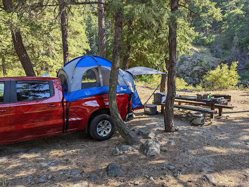 Read moreWe spent 2 nights (Sat/Sun) at this small campground & overall liked the experience. By late Sunday 12 of 16 sites were empty. At night he road noise ceased and we could hear the river. Had a huge space & most of the sites around the perimeter were fairly well secluded. Found access down to the Tieton River which was a great place to soak our toes in the heat of the day. If you have children use caution around the cold swift river. While there are no hikes from the campground there are trails up and down the White Pass area. There is only one hand water pump for the entire campground and...