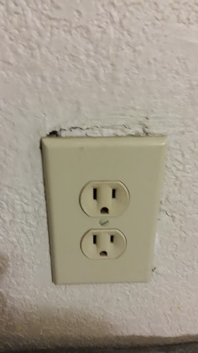 Lights all worked. Well lit parking lot at night. Handicap accessibility from lot. Door knob locks and door has interior latch, peephole. Hangers. Luggage rack. Accessible electrical outlets. Multiple drawers.
