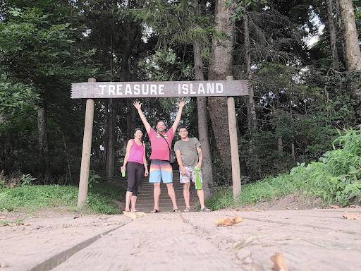 My husband and I spent this past weekend on Treasure Island. We had a BLAST!!!! When you first arrive, you will be greeted by a member of the TIO team. Everyone we met, from Stephanie, Nathan, to Uncle John etc were so helpful and kind. We unpacked our gear near the dock, got on the barge to cross the river to the island (only about a 2 minute ride), took an ATV to our campsite and unpacked!