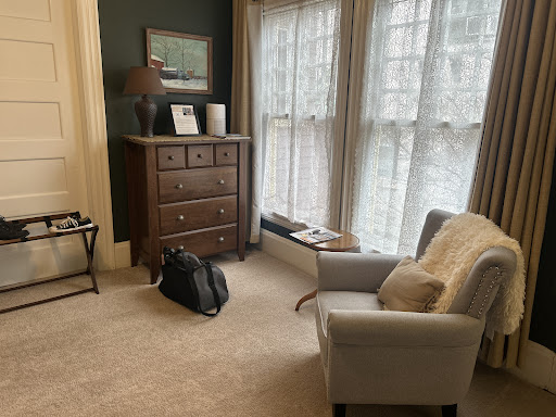 Let me start off by saying Hubs and I don't normally stay in a B&B. However, I am SO HAPPY WE DID!!! We dont like shared spaces and like our privacy. We have rented several entire homes, but we decided to give this a try. We had excellent directions with all the information provided, and we found the wonderful inn parking. We decided that we should park at the church because the vehicle we were in was so large. We were kind of a miss as to where the entrance was, but I do think that was of my own accord and not anyone else's. ||The reason we were even in town is because my mother was lifeflighted to the local hospital. As we live 200+ miles away, this seems to be our best option. Honestly I was tired of making decisions and Landon made all of my decisions extremly easy so I really didn't have to put much thought into them, honestly I probably sounded like a nut case and Landon if you read this I'm sorry for that.||Ok, enough rambling, my honest thoughts.. If you dont stay here... You are going to regret it. After parking and finding our way into the correct back yard (sorry to the neighbors by the way) we were greeted by cute decoration and a wonderful garden and outdoor seating area with a mini outdoor fire pit! After taking a few steps, we were greeted at the door! After coming in, we were in a small but effective kitchen stocked with eggs, juice, milk, cereal, breads, bagels, etc... All of which we were told that we could help ourselves to. From the kitchen, we entered the coffee nook/bar area! With ALOT of options to make almost any kind of coffee/tea combo we could ever want. And a mini bar! (Honestly, I should have maybe asked if I could have a night cap). From there into the dining room, with enough seating for at least 8 if not more! And, a cute little half bath for the common area downstairs. From the dining room into the sitting/living room area. 2 very comfortable couches and a HUGE tv to watch whatever your heart desires. Up a few stairs (Lord help my knees.. lol), and we made it to our room.||We stayed in the King room. Wow. Just wow. Sitting table, a couple of chairs, a fireplace, a closet (with robes and games!), the most comfortable bed I had slept in since my own bed a week ago. Our room had an en suite bathroom with an amazing tub! (She is a bit slick, and I may or may not have a battle wound to prove it 😆😛)||All the cute touches and extra things were so thoughtful. ||If I am EVER in the Toledo area again, I will definitely be staying here from now on. NO...