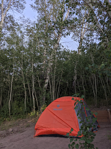 this campsite has six spots with two relatively small. it has a single stall with benches and outdoor stationary grills at every site. it is surrounded by quaking aspen trees and is next to stuart creek. this place is not advised for trailers, as there is a bumpy path to come in, but if you're up to do the job, a small trailer may get in. i went here with my dad to go hunting. we scaled mountains and walked the path and saw no deer! for a camping place, 4/5. for a...
