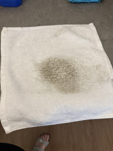 Later that night, the floors still felt sticky, so we walked around again with a towel and it turned black. Thatâs just ridiculous.