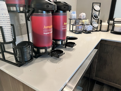 Read moreFirst time here with a friend visiting her family for Easter. Very clean and friendly hotel.👍 When I worked at a Comfort Inn we had to wear uniforms. It doesn't look appropriate to wear snow boots and jeans for housekeeping, makes me wonder how much cleaning gets done??? It says alot to wear a nice hotel apparel for the job you do. Not exercise pants either. 👎 Only suggestion I have is while sitting in dining room please get rid of the chandelier hanging in front of wall TV. Defeats purpose of sitting anywhere, whether at tables or couch to relax and watch TV. There's plenty of light that you don't need the chandelier. Maybe a pretty antique wall clock would be nice hanging on wall in dining room. Yes I know we have a TV in our room but it was a nice chilly day and sunny to stay cooped up in our room. We enjoyed conversing in the dining room after breakfast...