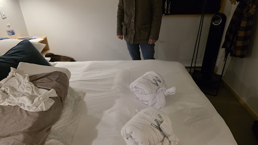 The Treehaus queen rooms should only have a full or twin bed and should NOT be rented to 2 people. There is a reason they do not list the room size online - it is TINY. Think queen bed plus maybe 3 feet at the end. The "minimalist" look with all white walls and 0 decor makes it feel claustrophobic. The door essentially opens right into the foot of the bed. (I see a photo here that has a much larger room than the one I received, which makes me wonder why they gave a couple such a small room).