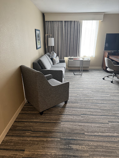 There aren't many hotel choices in this immediate area (near our son's home), and we have had good experiences with other Hampton Inns. We were not happy with this one. We stayed four nights and our room was made up only once, despite our requests to the desk and hall maid supervisor. The towels were changed once, but the bed was not made until the last night made and the room itself was likewise cleaned only once. The air conditioner vents are not adjustable so they kept blowing on us all night -- we finally had to turn the thermostat off, which eventually made the room hot and stuffy. The bed was too hard , but this is a matter of taste. Worse yet in a digital age, the night table on the right side of the bed had no place to plug in any device, either to a wall outlet or USB charger. Most hotels at least have USB outlets in their clocks. Speaking of which, my night table clock was running fast but there was no way a guest could change the time -- only the alarm. I managed to do it by undoing a panel on the back that staid "staff only" and fooling around till I found the button that would set the right time. In the bathroom, the toilet was so low that the only way I could get up was to reach out and grab the edge of the shower door. I am 77 and don't require an accessible room, but if you're going to use a toilet from 1978 that was obviously designed to accommodate children, you should at least supply a grab bar for their parents and grandparents. The only reason I didn't give this a lower rating is that the hotel is spotlessly maintained and clean, and the breakfast, while nothing special, was adequate. The coffee was good and...