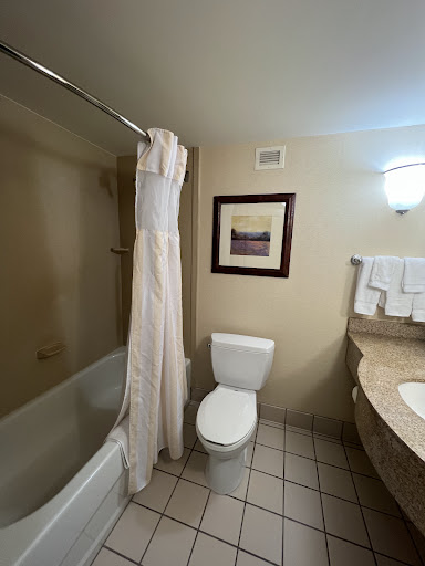 I have spent a lot of nights in many hotels around the world, mostly on business. Hilton Garden Inns are fairly consistent in service and accommodations around the world and I'll give this one 4 stars overall. Upon arrival, noted the grounds were nicely landscaped and the location clean. They are doing some exterior upgrades and painting and some of the areas are appropriately marked off for the workers. Friendly and courteous staff, well stocked lobby store with snack, beer, wine, and frozen meals if you desire to use your in-room microwave. The restaurant was good but they do not staff for lunch. I ordered off the menu for breakfast and my pancakes and bacon were very good. The bar opens at 5PM and has a decent selection of drinks. The bartender appeared proficient in their work with the different orders and it was a pleasant place to end the evening before heading upstairs.