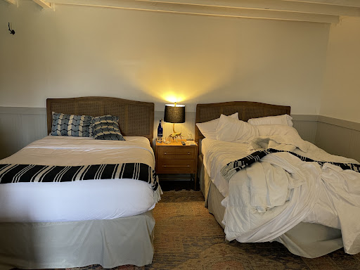 Check In: easy and contactless Room: Queen size bed and cramped. The small air conditioning unit could hardly keep up and the room got very warm at times even at the lowest setting. We called once and someone showed up and cleaned the clogged air filter but it did not help much. We felt that the air conditioning unit was inadequate for this room. A fan was provided but when it was plugged it it tripped the circuit powering the fridge and TV. We had to call again to get that resolved and did not plug in the fan after that. Cleaning: The room was not cleaned even once during our stay and we had to request some fresh towels. Strange: We were awakened on all three nights around 1:00AM with load bangs coming from under the floor, and loud footsteps as though someone was walking in our room. We did not see anyone outside or inside and the whole experience felt very eerie. Lighting: The room could have some additional lights. It is pretty dark at night and the two bedside lamps are not sufficient. Parking: Ample parking but all gravel. One of the guest's cars had a sudden blowout. Bathroom: Clean and comfortable. Well lit with an overhead light/exhaust fan that worked well. Breakfast: Complimentary granola with locally sourced yogurt. We liked the granola, but did not taste the plain yogurt. The nearest diner or breakfast place is about 10 miles away and only opens at 7AM.