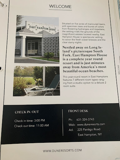 Read moreFrom the moment we checked in, I could feel that this was going to be a unique lodging experience. There was a small team of delightful women at the reception desk as we came early to check in before the Hampton Tech week conference. I explained that we had to get to the VIP dinner and it was very important that my three daughters and I were able to get comfortable accommodations. Jacqui stepped up and assured me that they were going to do their best to make our Experience comfortable and our daughters to have an enjoyable stay for their first time in the Hamptons of New York. Itâs been an incredible couple of days we just checked out, and I felt so compelled to write this review because of the love and unity that I felt in the Hampton began when we checked in to East Hampton House. I asked if my friend Tommy had already checked in and they said yes we met Tommy he asked about you John. if you were planning to come to the Hamptons, you probably have expectations of expensive lodging, overpriced everything and a bougie experience. we had all of the comfort we could ask for from the basics of towels and soap Tommy even exfoliated multiple times. Can you believe that by staying here you get access to your private Pickleball court and tennis court there are two courts and a pool if youâre coming here with your three daughters I definitely recommend staying and Tommy can get his own room. I hope Jackie reads this and knows how much I appreciate her and the rest of the team thank you...