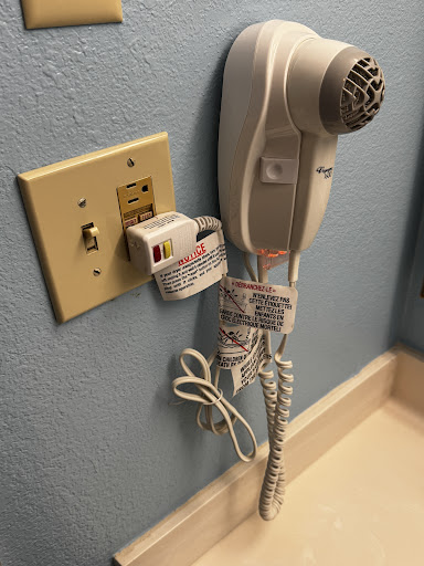 Read moreWe stopped here on our road trip for the night because it was per friendly, which was true. They have short stays under red roof and another section for long term stay, which we obviously did not use, but that is right there. As for location it's located next to a gas station with hot food and drinks. Its within walking distance as well. We stayed in rooms 101 and 103, which as conjoined. It's a bit far from the dog walking area, which is basically the grass surrounding the pool they have out front. You're not supposed to be walking dogs through "common areas" to get to it, so we had to walk around the outside of the building. Now, the issues we ran into were very concerning. In room 103 we had an electrical issue where I went to plug in my phone to charge it and the plug(see photo) sparked and it blew a fuse in the room. The plug was not mounted correctly and had to outlet cover. I almost got electrocuted, very scary, and the room smelled like smoke. We let the staff know and they said theyll contact people to fix it. They turned the power back on in our room and it sparked again, which concerned us. There was no outlet cover, it was nor safe or up to code. We would have moved rooms but in our situation we needed connected rooms, and these were the only ones available, so we stayed. All of the doors slam, so that's something you have to deal with hearing. Room 103 had a broken chain lock(see photo). The outside of the building has a lock to scan cards for entry, but those were broken too(see photo). The bathrooms were alright, but the tubs and shower had black around the caulking and other grime. Another issue I found with one of our bathrooms was the door was not sized correctly or something along those lines because the door was very hard to close, a lot of resistance. I would have expected better quality for the rooms(there is chipped paint on walls and damaged things). The appliances worked well, the fridges have plenty of room and the microwaves work fine. The batteries in the ome tv remote were dead, but they quickly gave us new ones after. Our one key card also didnt work after we went outside for a smoke break late at night, so we had to resort to knocking so we would be let in, it was late at night so that sucked. For a family I would not recommend. It didnt feel very safe, but if you need to stay the night in a pinch it...