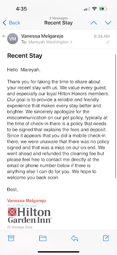 Read moreFront desk professional helpful and friendly. Our room wasn’t ready when we arrive a bit early but they gave us similar room just in a different floor. Rooms small with good and comfy king bed, a down/feather pillow for each side ( not comfy) desk, bureau nice tv with LOTS of channels and Netflix on the TV. Restaurant staff super helpful, refilled coffee without having to ask, breakfast buffet simple but plentiful and the bacon was crispy, the scrambled eggs soft and luscious, the home fries yummy. Housekeeping staff well- the hotel does provide a note that housekeeping is every two days - so if we wanted clean towels we had to call and request it. Housekeeping doesn’t even make your bed every day- I dont mind not changing the sheets but not making the bed is kind of disgraceful. And if you need more tissues, you have to call. Plus I was charged $6.00 for I have no idea what! Water has a hang tag saying it will cost $3.00 per bottle, so I took the one, left the tag and the bottle when I was finished and it remained in the room as I left it - no housekeeping. And I was charged $6.00. Which I did call attention to and it was removed. The hotel Was packed when we weee there with the Temple University soccer team ( they were playing Army at West Point) and they were a delight at breakfast. Plus there were several weddings in the area with guests staying at the hotel - we knew by the attractive discreet signage and the gift bags behind the front desk. The gym and pool were terrific and easy to access. And the front desk staff was hugely helpful about local restaurants, attractions and directions. Everyone working in the hotel was pleasant and said hello.
