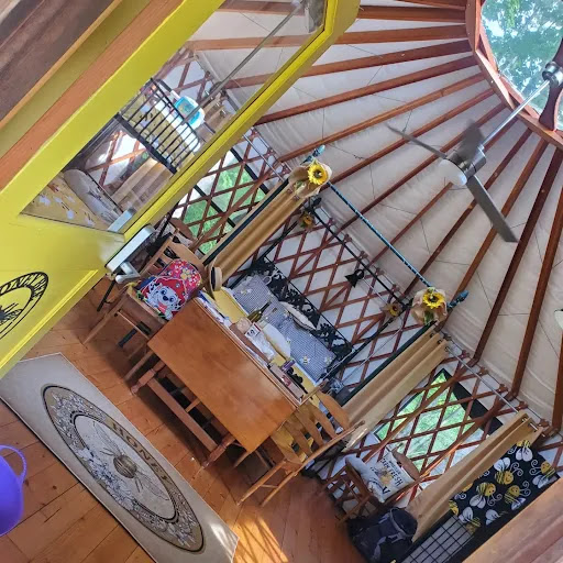 Absolutely delightful in every aspect. The property is stunningly beautiful, and the hosts are nothing short of wonderful. We stayed in a yurt that was just perfect, equipped with electric heating for the cooler nights. The level of cleanliness was exceptional, creating a cozy, homelike atmosphere rather than the impersonal feel of a hotel. The blankets appeared brand new and not worn in the slightest, emitting a fresh scent of eucalyptus and mint that was incredibly inviting. The yurt was fully stocked with everything one could need, from flavored coffees and various sweeteners to donuts and bottled water. The quality of silverware and plates provided was top-notch. There were lighting options to suit every mood, enhancing the serene sounds of the nearby river. Outside, a personal picnic table awaited, complete with a campfire and grill. The bathhouse was equally impressive, spotlessly clean with wonderfully scented soap, and showers that boasted strong water pressure and an endless supply of hot water. The hosts were so friendly and engaging, making for great conversation. The property also offers great hiking trails and is conveniently close to shopping centers. I'm eagerly looking forward to my next visit to this real...