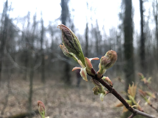 When we went into the woods nearby to gather up sticks, we didn’t see much a trace of animals, besides a single pile of deer poo, and what I believe was dog poo. I think we also found a nest along a stream of water (definitely not drinking water, and not much. More just muddy runoff water), which appeared to be abandoned, but cool...
