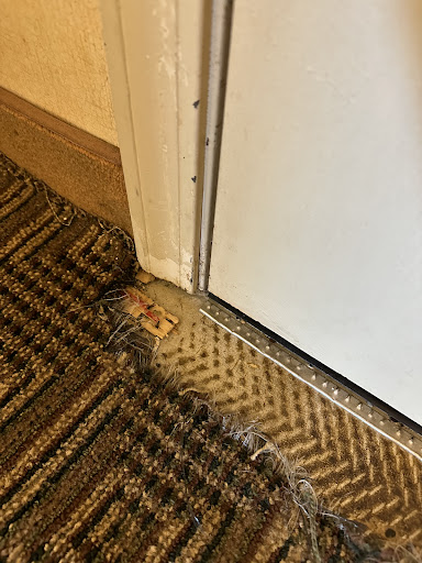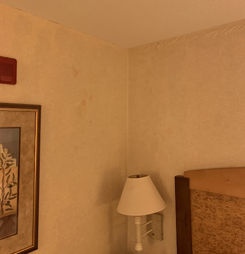 My girlfriend and I got to the room and when we walked in , we were disgusted. The rug was ripped and had burns all over(why are there burns if it’s non smoking??). The bedding and pillow cases were yellowish and had darker spots on them and the desk chair was also stained. The furniture was super old and the bathroom was not cleaned well as there was hair in the shower. Additionally the sink was completely clogged. The final straw was the “reddish” stain on the wall appeared to be blood. That was it for us and immediately left to talk with the front desk.