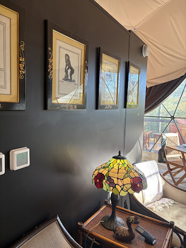 The interior of the dome was SOOOOO cute and intimate. Very tastefully done â from decor, lighting, and utilities. We had easy access to heat and AC which was crucial for us! The kitchen also has everything except an oven which was still great. The bathroom was very clean and had all personal care items. The dome even had slippers and robes for us!