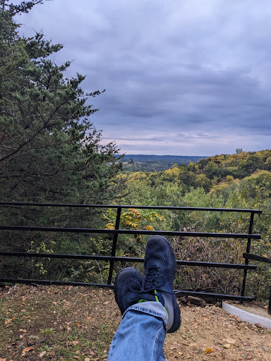 Also this campground has the nicest and best maintained tent ⛺ sites I've ever seen!👀. They all have picnic tables in excellent condition. They all have firewood already stacked up and covered from the weather, and fire 🔥 rings. They are all situated at the top of the hill and some have excellent views. There's even one with a swing overlooking the valley! 😱👀 And portable toilets so you don't have to walk down the hill to the bathroom in the middle of the night 😉 The bathrooms are very clean, There are two of them with two coin operated 🪙 showers🚿 in each one.