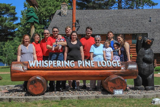 A group of 18 friends from Kansas and Minnesota came up with the grand idea to celebrate a friend's milestone birthday over a long weekend in the Main Lodge. We arrived late on a Thursday and departed the following Monday. Most group vacations are like fish, after three days they start to go bad, but not this vacation. ||||Best part first: The owners, Jeff & Maria are fantastic hosts. We got a guided lake tour, went on a bald eagle sighting tour (saw four), and had a fully hosted fish fry which included all the fish we caught plus a few others provided by Jeff. They've anticipated most needs, and quickly accommodated the few that came up during the stay. Dog lovers have to leave their pets at home, but Zoey (Jeff & Maria's Golden Retriever) will hang out and let you pet her all day long. This is a free service and one she gladly provides.||||The Main Lodge is a historic logging camp and has incredible views of Pickerel Lake. 14 of us stayed in the Lodge, while four others set up in one of the smaller cabins. We had seven good sized bedrooms and three bathrooms upstairs (two with showers). An additional half bath downstairs ensured that everyone could get ready at their own pace. Hot water was plentiful and had good pressure. The bedrooms had plenty of dressers, shelves, and wall hooks to allow us to unpack and spread out a bit. ||||The first floor is comprised primarily of the kitchen, the dining area, and the Great Room. The fully equipped kitchen includes a gas stove, two full sized side by side refrigerators and pantry shelving to accommodate your supplies. The dining area has three dining tables, and enough chairs to allow everyone to eat at the same time. The Great Room has a beautiful wood burning fireplace and plenty of dry firewood is available for a nominal fee. Two couches face the fireplace, while four other couches are arranged with comfortable rockers and recliners to provide for four different lounge/conversation areas within the Great Room. Since the Lodge was originally constructed for purely utilitarian purposes, the first floor ceilings are a bit low in the Great Room and kitchen. ||||The grounds immediately surrounding the Lodge have a large recessed fire pit with sturdy split log seating for everyone staying in the group. Other free entertainment options include use of the paddleboat, canoe, kayak, and fishing boat. A pontoon boat w/outboard is available for a very reasonable fee. The lake is peaceful, serene and crystal clear. Fisherman will be glad to know that our three avid fisherman brought in a full stringer of northern pike and one small mouth that met the limit. Fishing licenses available in town, five minutes away. Non-Water sports that are available are basketball, tennis, and miles of groomed trails in the area. For the great Indoorsmen in your group, the Lodge has two upright pianos, a flat screen TV with DirecTV, and free Wi-Fi. There are lots of outlets throughout the Lodge to allow recharging of all your electronic gadgets. A full cabinet of board games and playing cards are also there in case the power goes out.||||There is absolutely no doubt that I will return to The Whispering Pines Resort with members of this group, as well as any other friends or family that are willing. My wife and I travel quite a bit and this is by far one of the most affordable, and overall the best vacation...