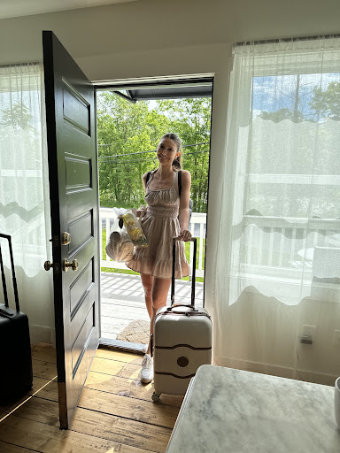 Upon arrival, a sign of my celebration was waiting, the rooms stocked with their welcome kits and wine, the fridge with crudite and dips awaited my guests. And the flowers. Big beautiful sunflowers everywhere. My fave.