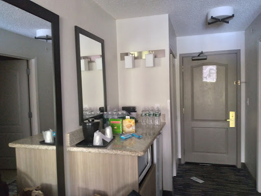 Upon walking into the lobby, you can see that this hotel is set up for get-togethers. Lots of comfy seating, and a 24 Hour coffee station, with great coffee and tea! Hot breakfast until 10am. Great staff - very accommodating, and an easy check-in-check out.