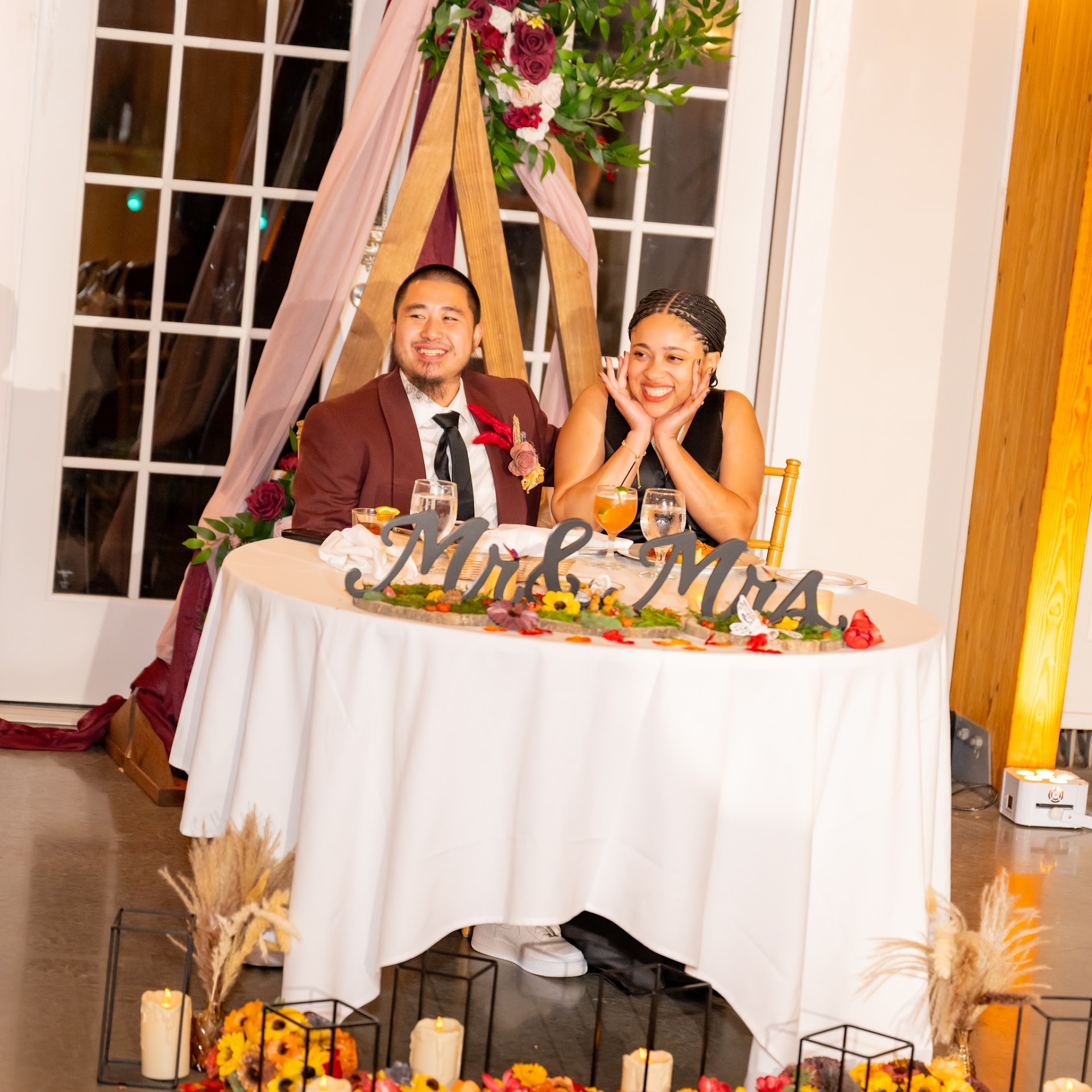 Not only was the actual wedding so seamless, thanks to their clear experience throwing events, the planning process was very easy. From our first tour in Jan 2021, we felt welcomed by the staff, and could tell they were very capable. We had our tasting in Nov 2021, and got to meet with all the staff to choose food and beverages. The resort has a variety of cabins and "ski lodge style" houses, and when we visited the venue, we got to tour every room at the resort to help decide where to place our friends and family. Throughout the planning process, Tia was amazing at helping us coordinate the rooming situation. I will say that this was more complicated than organizing a seating chart, but in the end, our guests were very happy with the accommodations. We did not hire a separate wedding planner. While it took a lot of effort from us to coordinate and organize guest lists, working with Morgan and Phoebe and all of the full moon staff made it very easy to execute our vision. Morgan and Phoebe were amazing, not only from our meetings 1-2 months out, but they took over everything during the wedding weekend. Phoebe frequently checked in on me (the bride), brought me drinks and water, and even helped me change into my afterparty dress.