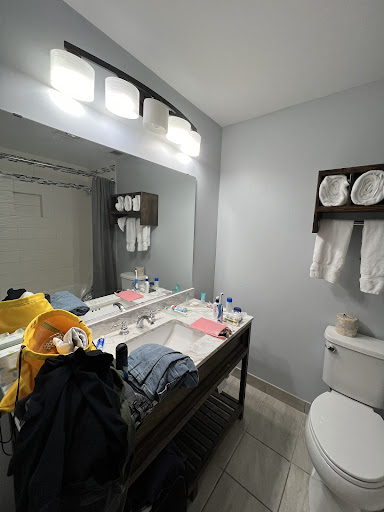 Other joys include: Noah told us that the suite would have 2 rooms, it didn't. Just one big room. the guy that delivered our beds saying "Sorry they're so late, no one told me you needed them." WE SPECIFICALLY ASKED FOR THEM MONTHS AGO WHEN WE MADE THE RESERVATION. an empty Poland springs water bottle left by a previous guest in plain sight behind the bedside stand. If they missed that, what else are they missing? disgusting black mold in the grout in the shower, was so bad we didn't want to use it.