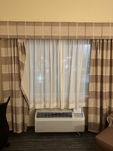 Read moreThe hotel is actually pretty decent, not too big and is in a fantastic location considering it’s right off of the I-90. I wish I had taken photos of the room because the bathroom was spacious and perfectly clean, the shower was huge and had great water pressure and was hot. The bed was comfortable enough and aside from some questionable stains on the one chair it was very clean. But there were a few things that made my stay unpleasant. I paid $250 for one night. My room was across from the staff room which had the door open while employees were in there listening to music and talking. So I could hear everything in my room. At 1:30 in the morning I heard very loud women outside of my room and I’m unsure if it was staff or guests but I honestly thought that someone was fighting before I realized they were just being loud. Check in also took way longer than I would’ve liked considering I had booked and paid online in advance. It took almost 15 minutes for me to get checked in, 5 of which were spent waiting for someone to appear at the front desk. And my biggest complaint is about the curtains. My room was on the first floor and faced the parking lot. There was a sheer curtain across the window, with drapes on either side. However the drapes were not made to close. The track they were on was only about a foot wide. You could see where someone had tried so hard to close them that they ripped. So I had headlights and the outside lights from this hotel and the hotel across the parking lot shining directly into my face while I was trying to sleep. I had had an emotional stay and therefore did not feel comfortable going to the front desk to ask about it. It was insane to me, I had zero privacy and my entire room was lit up from all the lights outside. Had I not spent so much money on this room I would give it more stars, but $250 for a room that I can’t even undress in without being seen? No way. I would stay here again if I had to but would definitely need to get the curtain situation fixed first. The picture you see of my room is with all the lights...