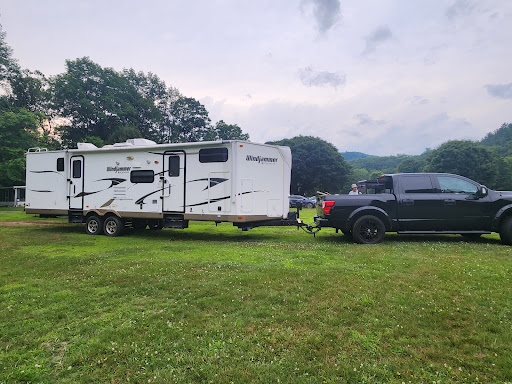 Owners are so amazing and hardworking. They are so helpful, kind and pleasant to talk to every time. I love the access to the River and Duck Races in the River! And a pool to swim in too! Hayrides through the campground, Bingo nights and Halloween trick or treating and the large bonfire in the middle of the field. Small playground with swings slide sandpit with toys and a large outside spinning tic tac toe game. Kids love to check out the fun critters in the pond, using nets to catch small fish, catfish, turtles, crayfish, and a lizard! We love cooking s’mores over our fires lounging in our chairs and catching up with family. My 3 year old toddler and all family from 3 months old to 92 years old enjoy this experience. Grocery store is just right around the corner....