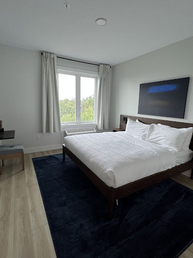 Read moreThe Front entrance isunder construction (which was very smelly). We were not told this when we booked, entrance was from an alley on the side with virtually no signage. We got a ticket parking overnight on the street out front since there is no on-site parking or parking arrangements within walking distance. The city does not allow overnight parking. The room was nice but sparse, layout not easy to navigate (fridge and microwave difficult to access crammed into the far corner). Shower had no safety features, such as grab bars, no working exhaust fan, toilet kept running b/c the handle kept sticking. Room keypad had a 60-second dwell time so as we left the room we had to wait until we were sure it locked. If I were a woman alone there, anyone could open the door and follow me during that dwell time. No pool, no gym, no ice machine. This is not a hotel for seniors or those with disabilities. We will...