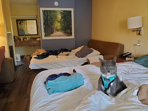 Read moreMy wife and I came here for a vacation our first night it was okay, at first everything seemed fine, then after our first night that’s when we started seeing the way things were, our bed was extremely hard and very difficult to sleep on, my wife had seen roaches in our room, there was hair in the bathtub, and that was just our room in general. Before we checked in my wife checked to see if there was a breakfast selection available, and she was told there was, after we woke up we went over to go for breakfast and the only options was a honeybun, a small thing of yogurt, a packet of oatmeal, which you have to make yourself, and also some juice either apple or orange, the apple juice was a pretty sad attempt to be called apple juice. I get it that Covid is still a thing and I’m sure that’s what is effecting the breakfast but seeing other places opening back up to just about normal why hasn’t the breakfast area come back to normal? Now on to the pool, our first day in the pool it seemed okay, the pool seemed clean, but on our second day we saw bugs all in the pool, pieces of roaches and even a couple of whole roaches, I get it that bugs are going to come in and there’s nothing that can be done but someone really needs to at least keep the pool area clean...