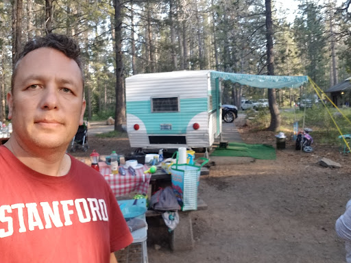 We really enjoyed this campground. The sites are spacious and well maintained. They provide a shelving hut in your space to keep firewood dry. There is a trail that you can walk to see Donner Lake that is easily accessible from most sites. It is about 30 to 45 minutes from Lake Tahoe if you want to explore that area. There is a Chevron gas station right outside the campground that has a dump and fill station if your have a camper or RV. You can also get firewood at the chevron or at the entrance of the campground. There is a cool river rafting area about 10 minutes down the road that we did that was really fun. We didn't give it 5 starts because there is poor signage in the park and on the trail. We had a difficult time finding the exit to leave the campground and we also got a bit turned around once it got dark on the trail. Be aware of wildlife, while on a road walking back from the trail after being turned around we did...