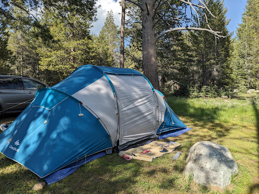We enjoyed our two-night stay, we planned to stay 1 more night but we were literally devoured by mosquitoes like never before, despite repellent, so we left. Most people during our stay camped for 1 night. Sagehen creek is very close to the campsite (convenient to get some water), and the meadows are mostly marshland, that's why there were a lot of mosquitoes. The place is very beautiful and so peaceful! At night you're rocked by the sound of the creek and in the morning the singing birds wake you up. Thank goodness NO noisy generators!!! The campsites are very large and you're not on top of the other campers. There are just 10 spots, on July 4 3 spots were occupied and the next night, 5 spots. It's a dispersed campground so it's free, but each site has a picnic table and a fire pit, plus there's a pit restroom ( no need to dig a hole ;) ) The road to get there is a bit rough at some points, 4 WD is necessary! We saw a coyote on the road and my son saw a black bear in the meadow 30 yards...
