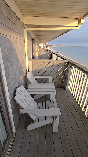 Read moreMy daughter and I stayed here for the weekend. I had not been to Cape Cod in many years. My daughter and I stayed here on yet another rainy New England weekend. Despite the lousy weather this resort was very nice. The room was very clean, and we had a ground level room which opens right onto the beach. The patio has two Adirondack chairs which are sheltered so even if it is raining there is protection. Each unit has a picnic table and a stand where a hibachi or charcoal grill can be placed. The kitchen has a good-sized fridge, microwave, toaster, two burner stove, and coffee pot which comes with filters. There were dishes and silverware for 4. We had brought provisions for breakfast and lunch. || The indoor pool and hot tub are across the street and there looks like there is also a shallow pool there for little kids. There were plenty of chairs and tables around the pool. The area there was clean, and it was really nice to go there and not be overrun by screaming kids. There is also a bar there with $7 cocktails (that is Right!!). There appears to be tennis courts and a basketball court as well and there is also a restaurant which serves food, but we did not use it.|| The staff was very nice, and the office has lots of maps, brochures and information about sites and restaurants in the area. There is also a book exchange library, so I was able to leave my finished book there for someone else to enjoy. There is a bus that goes to Provincetown. We will defiantly stay here again and will hope for a sunny weekend. This was NOT New England's summer. My daughter had stayed here over Memorial Day weekend ( one of the only sunny weekends) and she and her friends saw seals frolicking in the bay and she said the sunset...